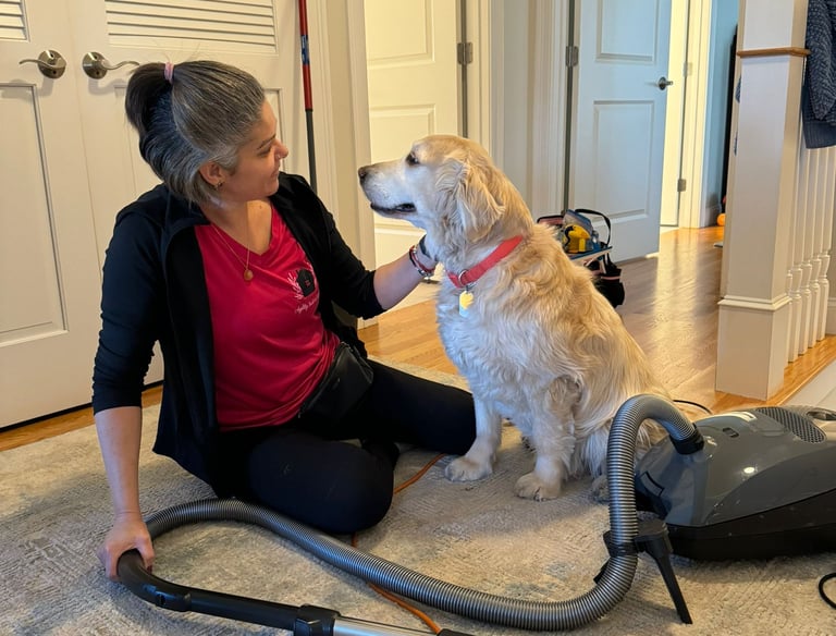 Jeny is amazing! In addition to doing a thorough job of cleaning our home, she is kind, flexible and very patient with our dogs who don't like vacuum cleaners!!